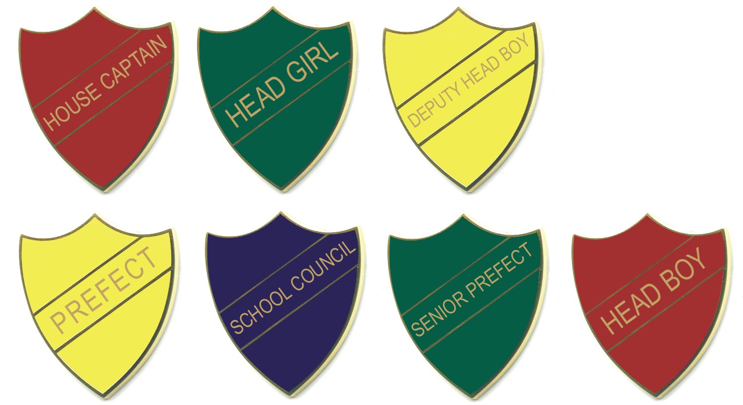 These badges are made of hard enamel which has a beautiful lustrous smooth finish that will last the test of time. The text and outer border of the badges are gold metal and each design can be ordered with red, yellow, blue or green enamel.
