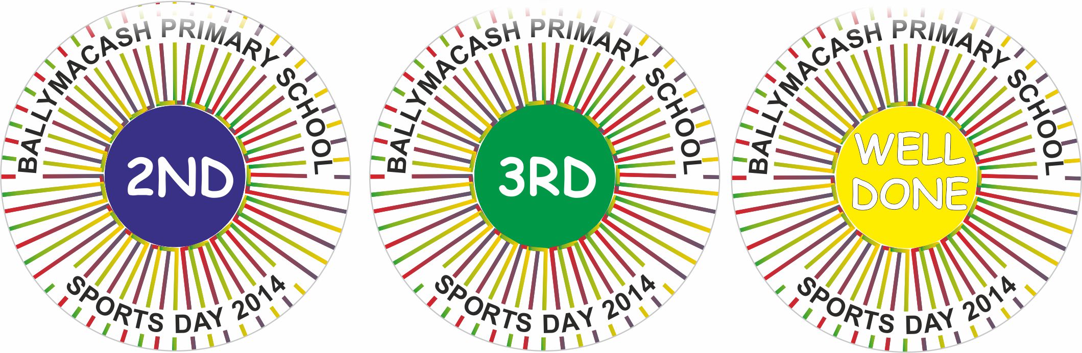 Delight every child with one of these colourful badges offering instant reward for sports day success & encouragement for taking part. See previous page for other designs.