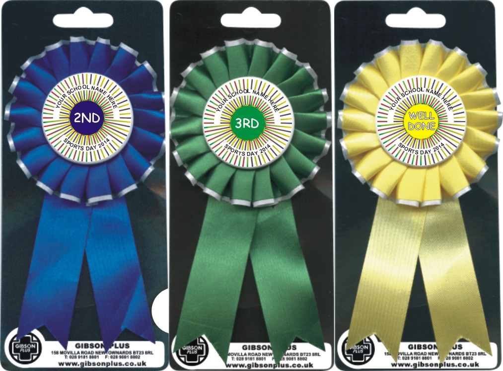 Bigger, bolder & brighter these fantastic rosettes will ensure your sports day has maximum impact.See previous page for other designs.