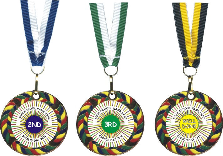 The Medals come complete with ribbons which are colour coded to match the text and denote 1st, 2nd 3rd and well done.