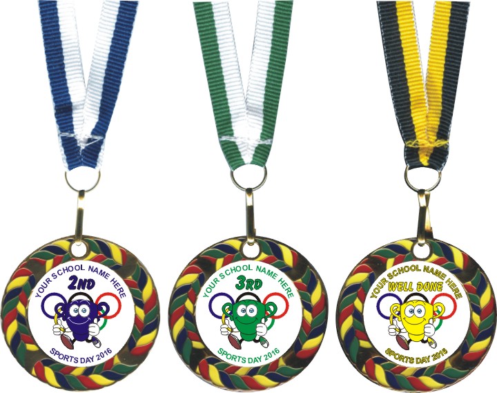 The Medals come complete with ribbons which are colour coded to match the text and denote 1st, 2nd 3rd and well done.