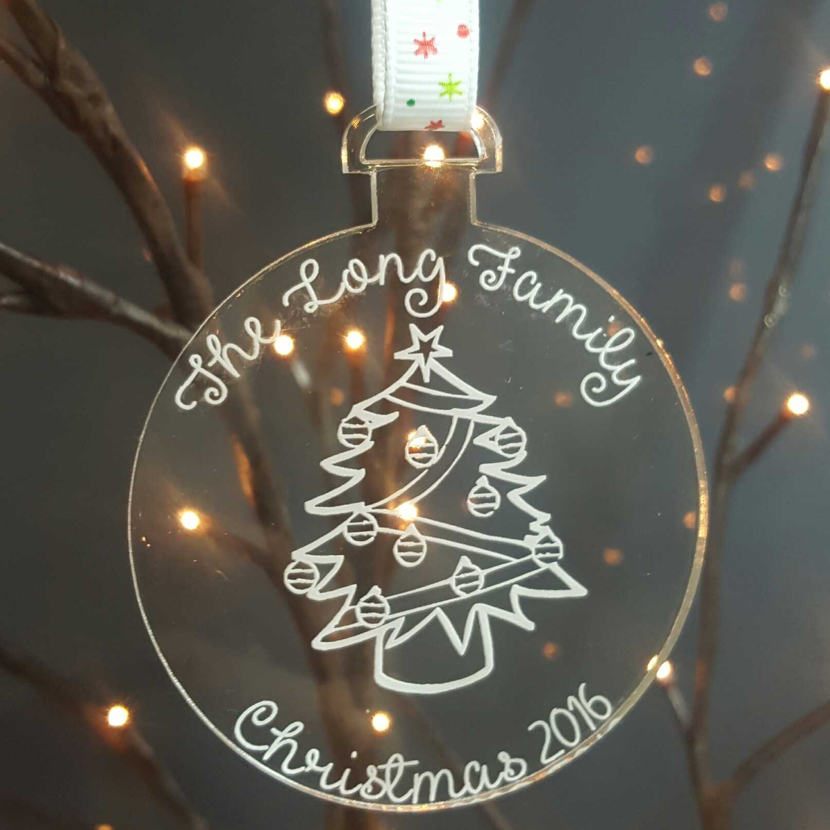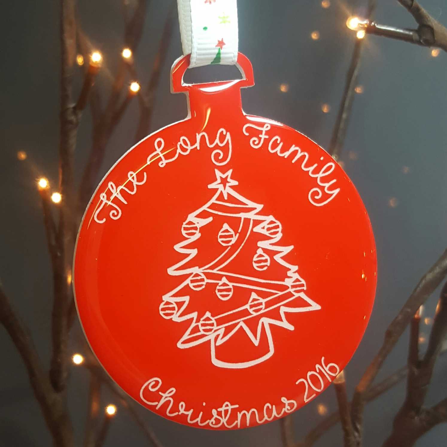 This cute decoration is perfect for a Christmas gift as well as a lovely addition to your own Christmas tree. It comes in a choice of clear perspex or a colour of your choice with a clear resin finish. The text on the top and bottom lines can be changed to suit your own personal needs.