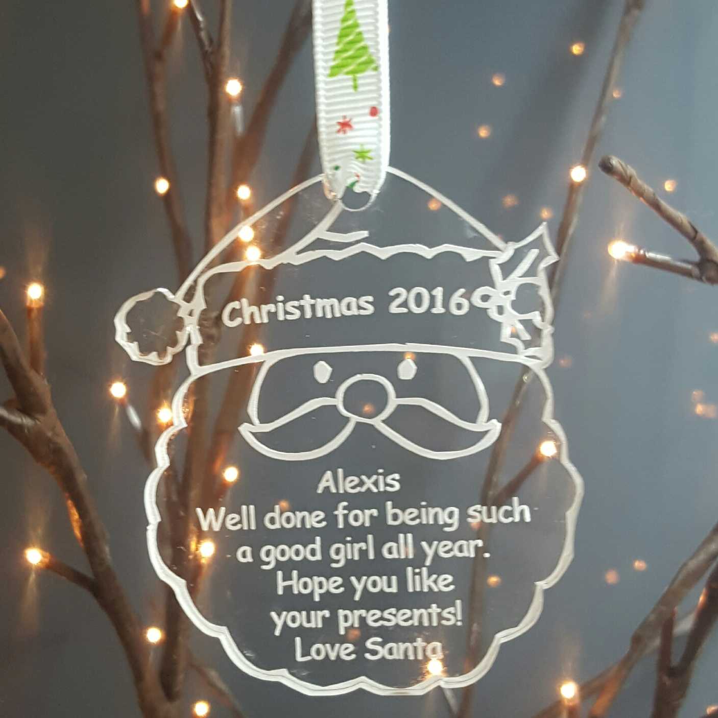 Imagine the delight on your Child's face when they find this special personalised Christmas decoration with a message from santa hanging on the tree! It comes in a choice of clear perspex or red with a clear resin finish.