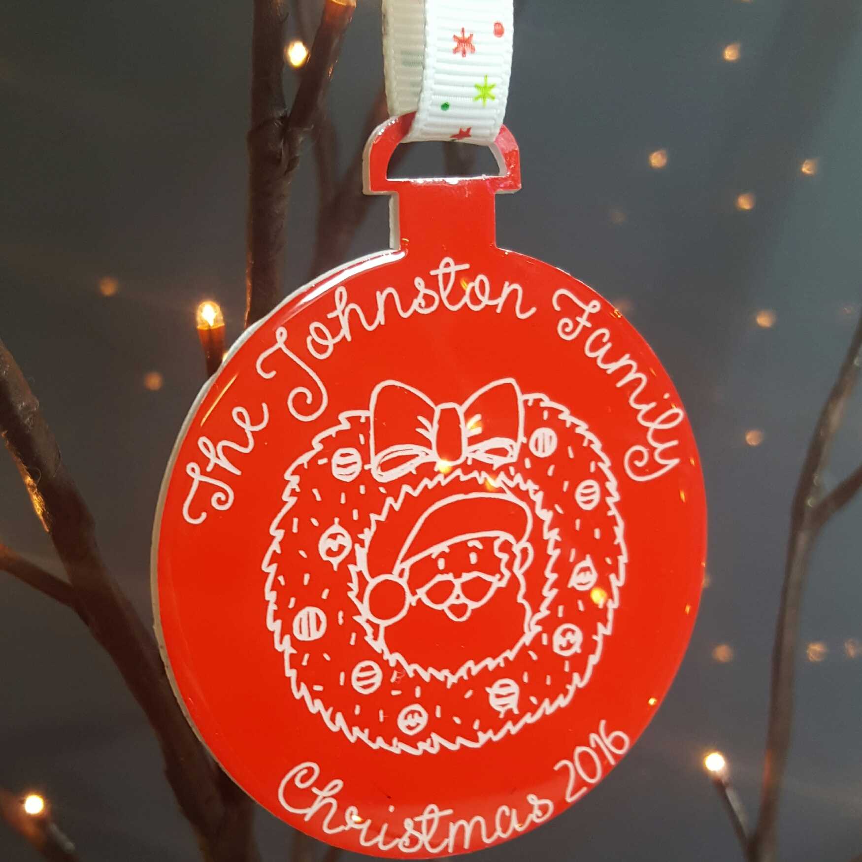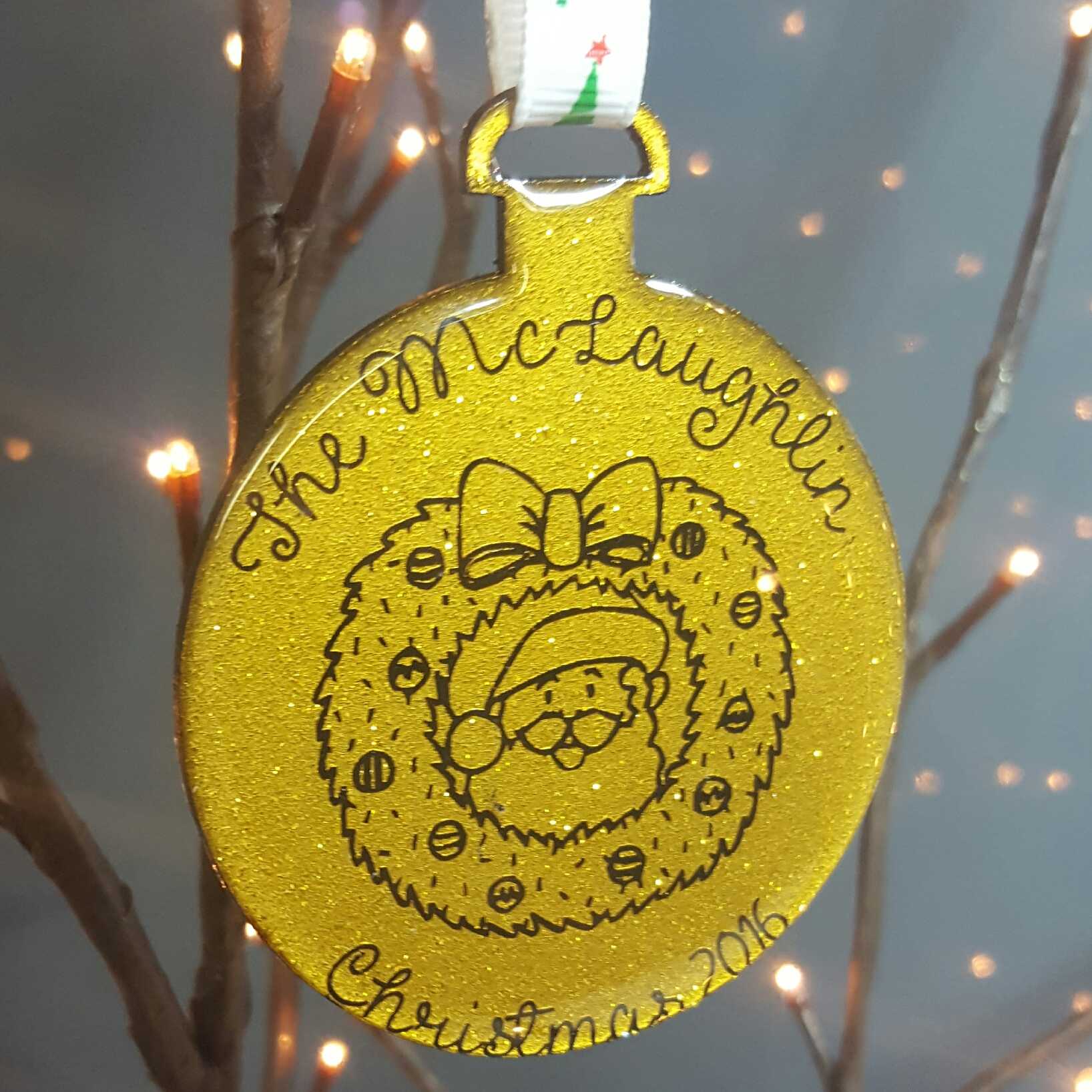This decoration is perfect for a Christmas gift as well as a lovely addition to your own Christmas tree. It comes in a choice of clear perspex or a colour of your choice with a clear resin finish. The text on the top and bottom lines can be changed to suit your own personal needs.