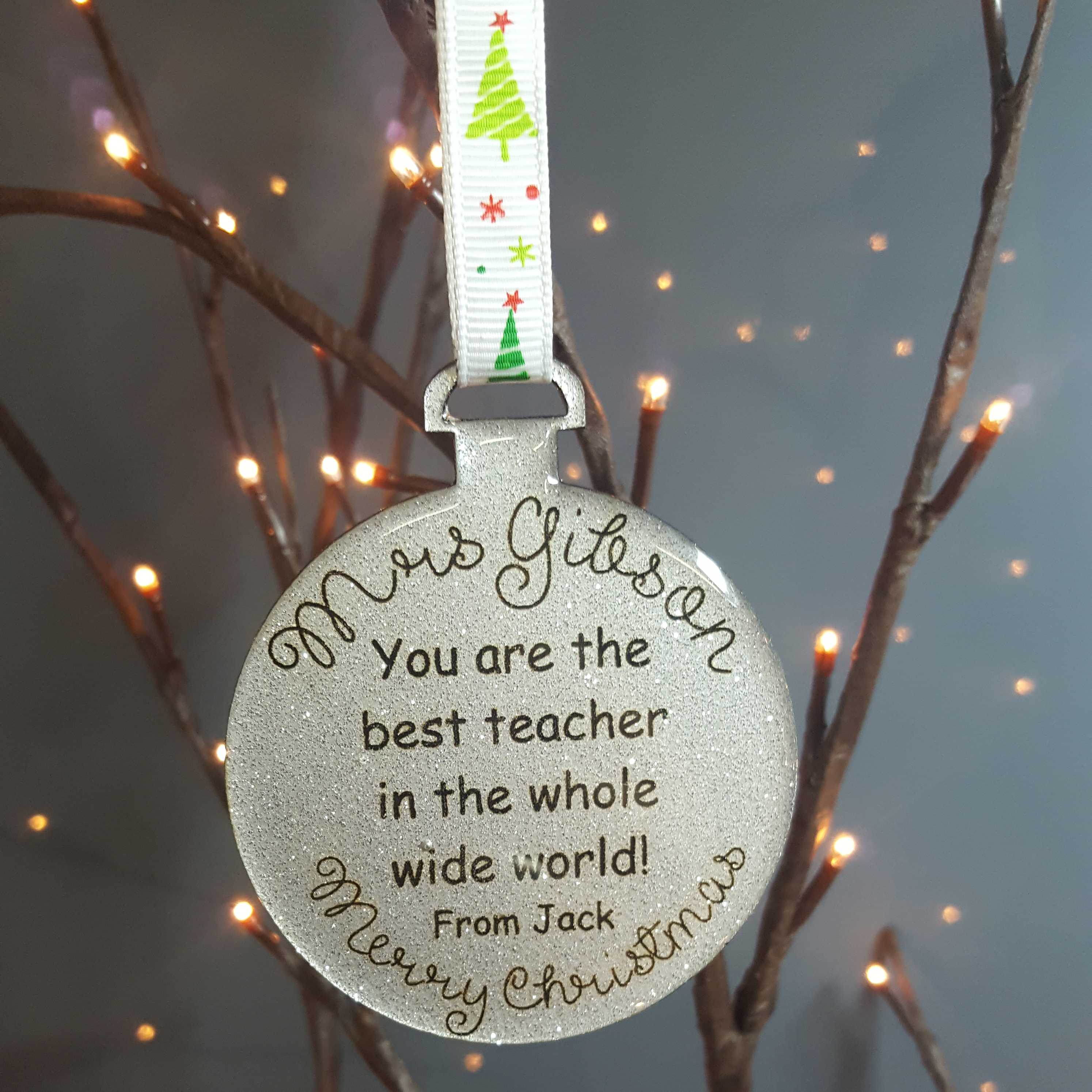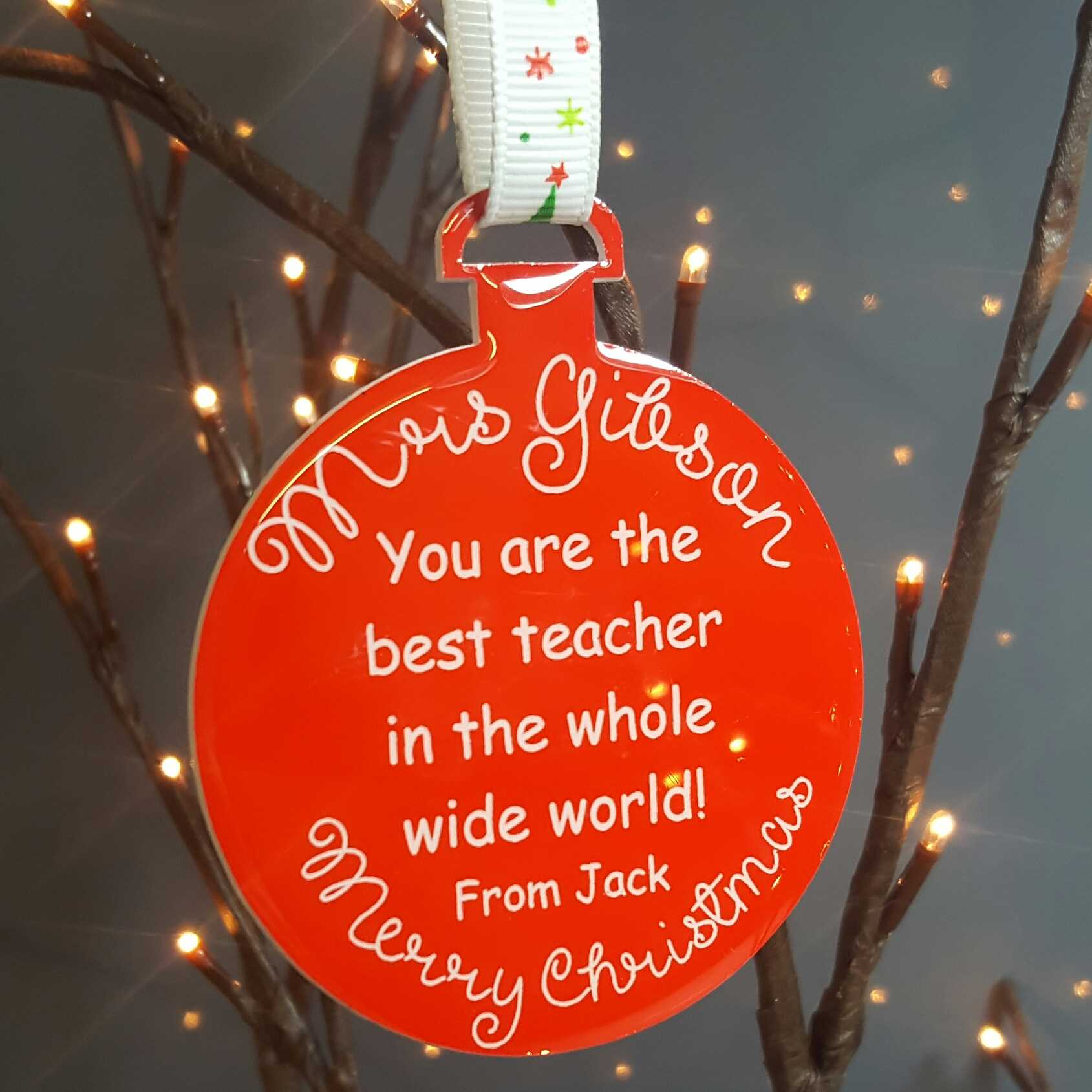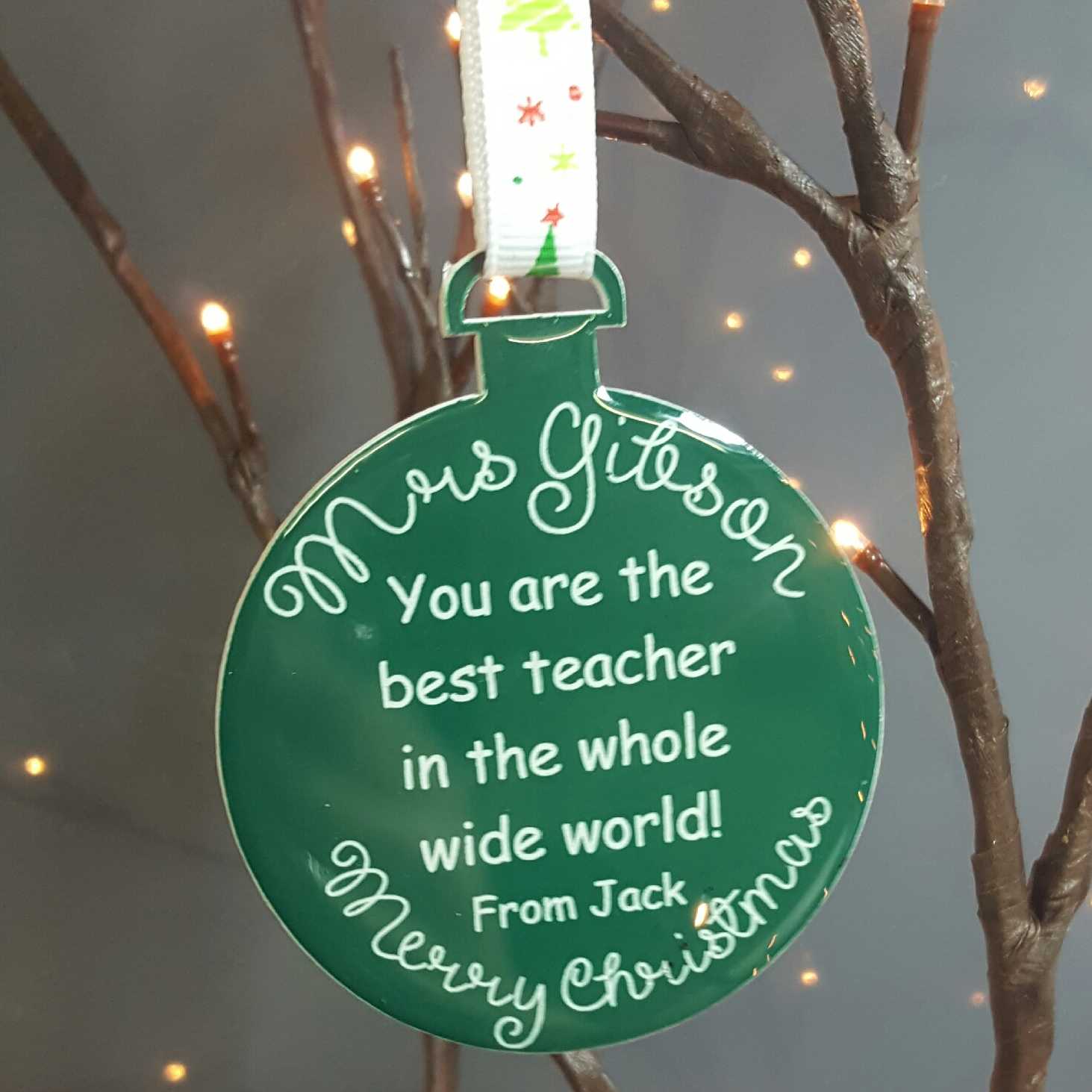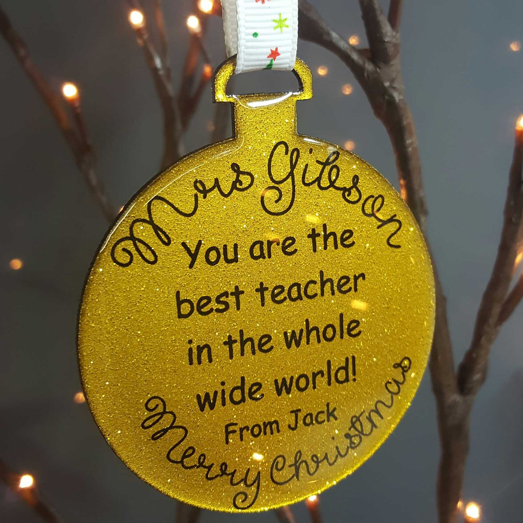 Get your kids teacher something different this year with this personalised Christmas decoration to tell them just how brilliant they are! It comes in a choice of clear perspex or a colour of your choice with a clear resin finish. Use the "tell us what you want" box to type in the your teachers name.
