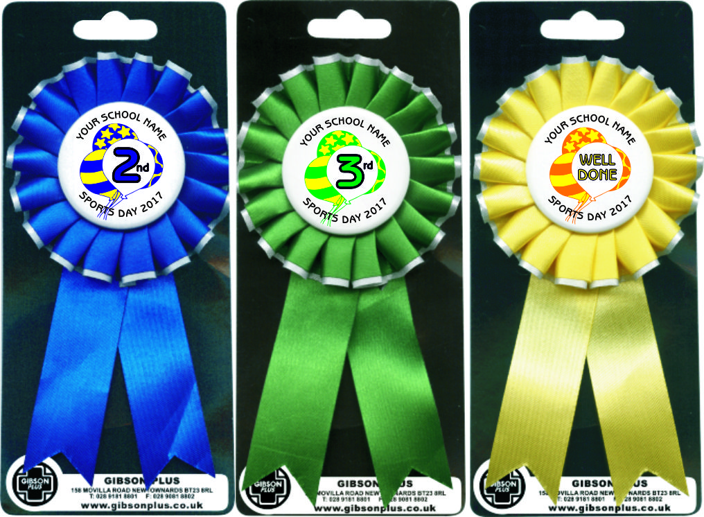 Bigger, bolder & brighter these fantastic rosettes will ensure your sports day has maximum impact.. Click here for more designs
