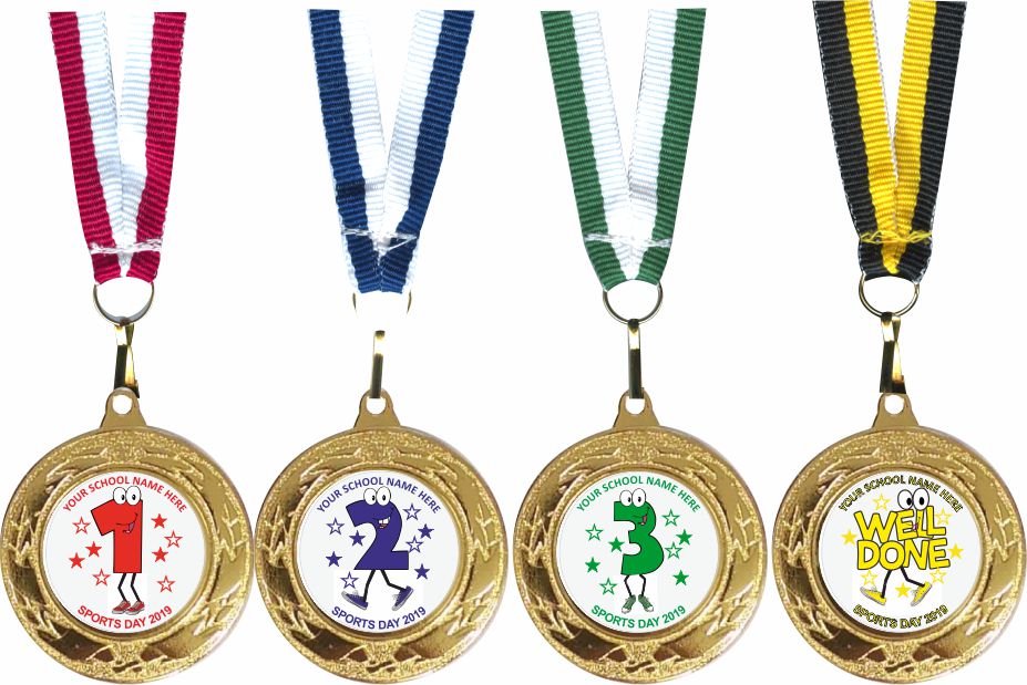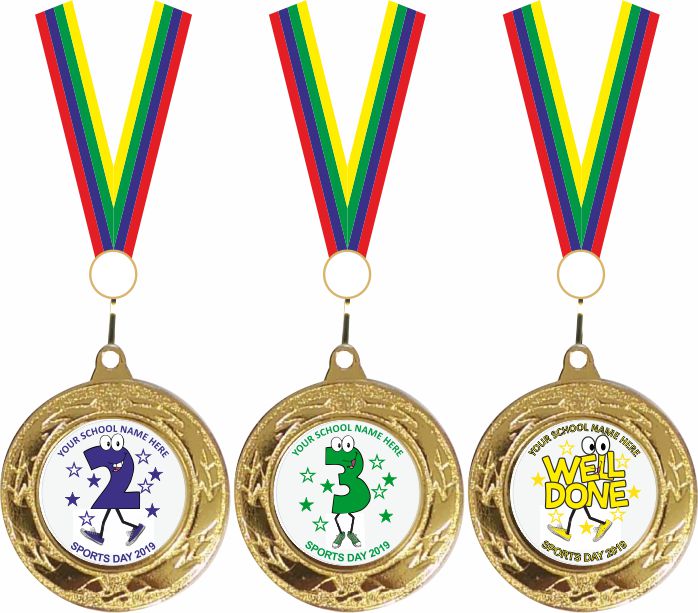 These bright new medals have an attractive gold border that will appeal to your students and wont break the budget as they are the most cost effective medals that we offer. They come with an attractive all new 4 colour ribbon already fitted to each of the 1st , 2nd, 3rd and well done medals