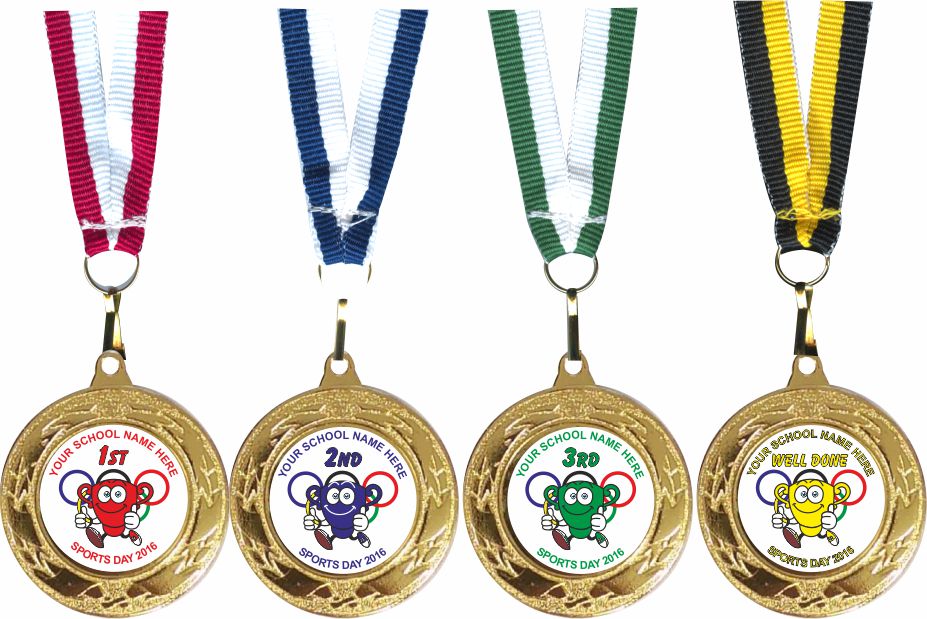 These bright new medals have an attractive gold border that will appeal to your students and wont break the budget as they are the most cost effective medals that we offer. They come with an attractive all new 4 colour ribbon already fitted to each of the 1st , 2nd, 3rd and well done medals