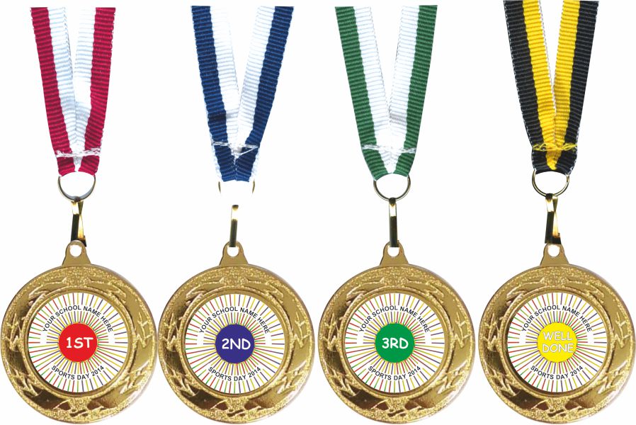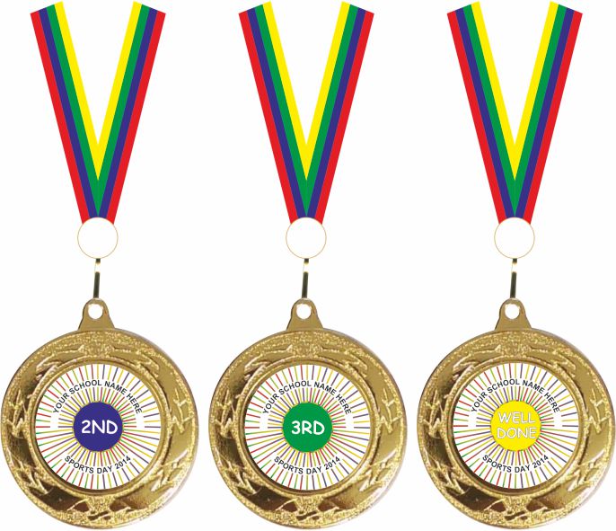 These bright new medals have an attractive gold border that will appeal to your students and wont break the budget as they are the most cost effective medals that we offer. They come with an attractive all new 4 colour ribbon already fitted to each of the 1st , 2nd, 3rd and well done medals