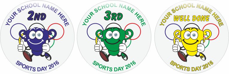 Delight every child with one of these colourful badges offering instant reward for sports day success & encouragement for taking part. See previous page for other designs.