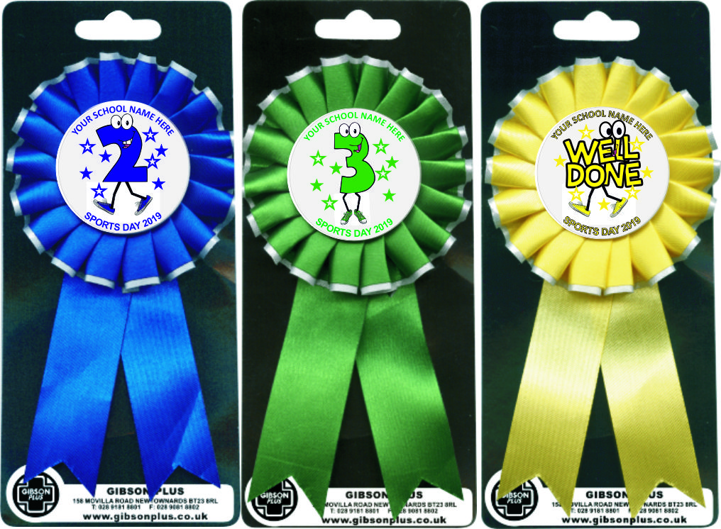 Bigger, bolder & brighter these fantastic rosettes will ensure your sports day has maximum impact.See previous page for other designs.