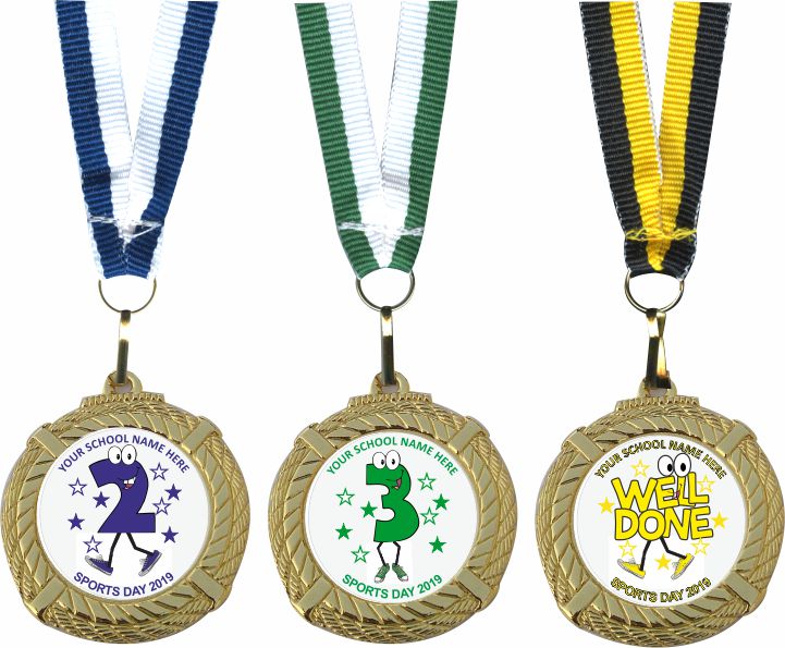 The Medals come complete with ribbons which are colour coded to match the text and denote 1st, 2nd 3rd and well done.