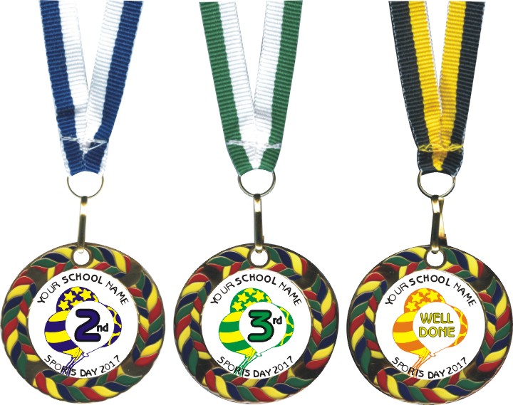The Medals come complete with ribbons which are colour coded to match the text and denote 1st, 2nd 3rd and well done.