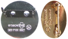 Badges are available with staple fixings for permanently fixing them flat onto jewel ribbons or with safety pins so you can pin them onto clothing.