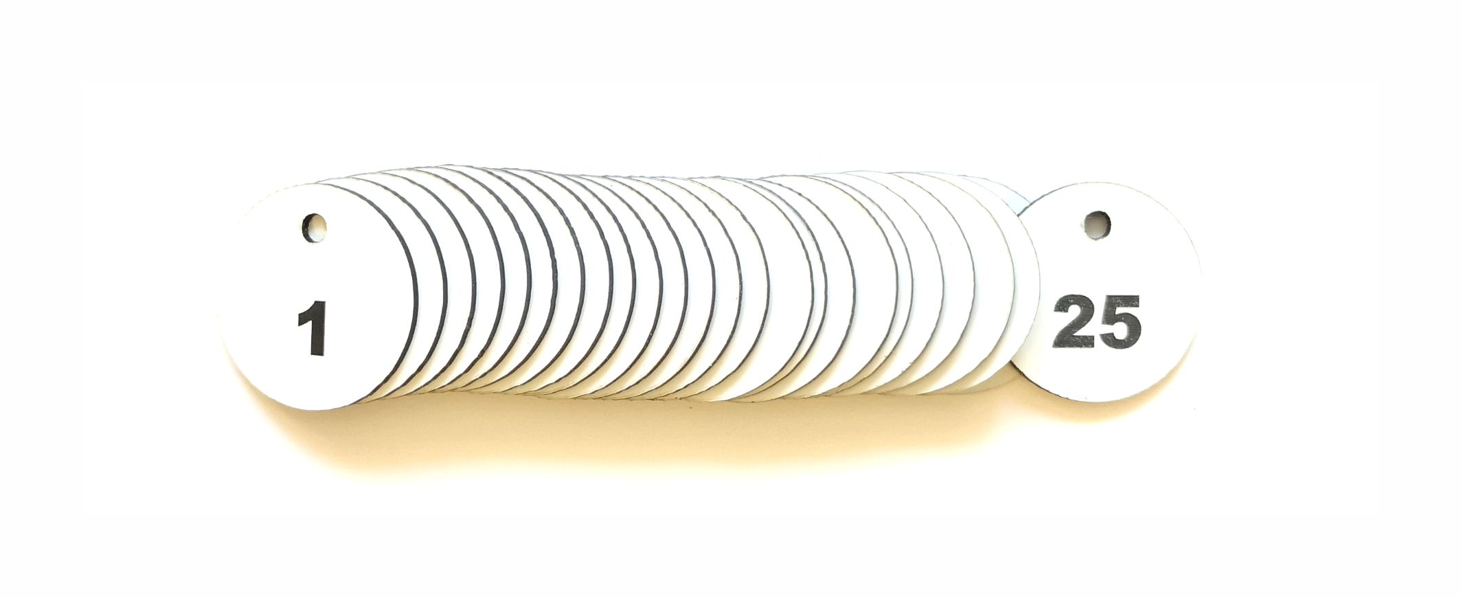 From as little as £0.78 each + vat these are the most popular key ring tags. Each tag is supplied with a 25mm dia key ring for conveniently attaching them to valves. 16 colours of interior grade plastic laminate are available, the tags are consecutively numbered from 1, 2, 3, through to the quantity you order and best of all - the more you buy the cheaper the unit cost!