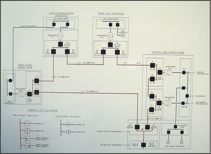 The mimic above was produced for a client to indicate the HV and LV circuits for a local hospital. The mimic was mounted on a metal back plate and had cut outs that accepted magnetic inserts to indicate the position of the circuit breaker.